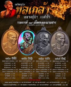 ๑๓. เหรียญชุดกรรมการจัดสร้าง ณ สถานที่ศักดิ์สิทธิ์ ได้แก่ วัดหงษ์ พระเจ้าใหญ่ และพระธาตุนาดูน ซึ่งล้วนเป็นสถานที่ที่เกี่ยวพันกับประวัติของหลวงปู่อย่างแนบแน่น อีกทั้งยังมีการนำ “แร่เจ้าน้ำเงิน” ซึ่งโบราณเล่าขานกันว่าเป็น “กายสิทธิ์” มีฤทธิ์ โดยเฉพาะด้านการดึงดูดโชคลาภ วาสนา เรียกลาภ เรียกเงินทอง และเสริมโภคทรัพย์อุดมสมบูรณ์