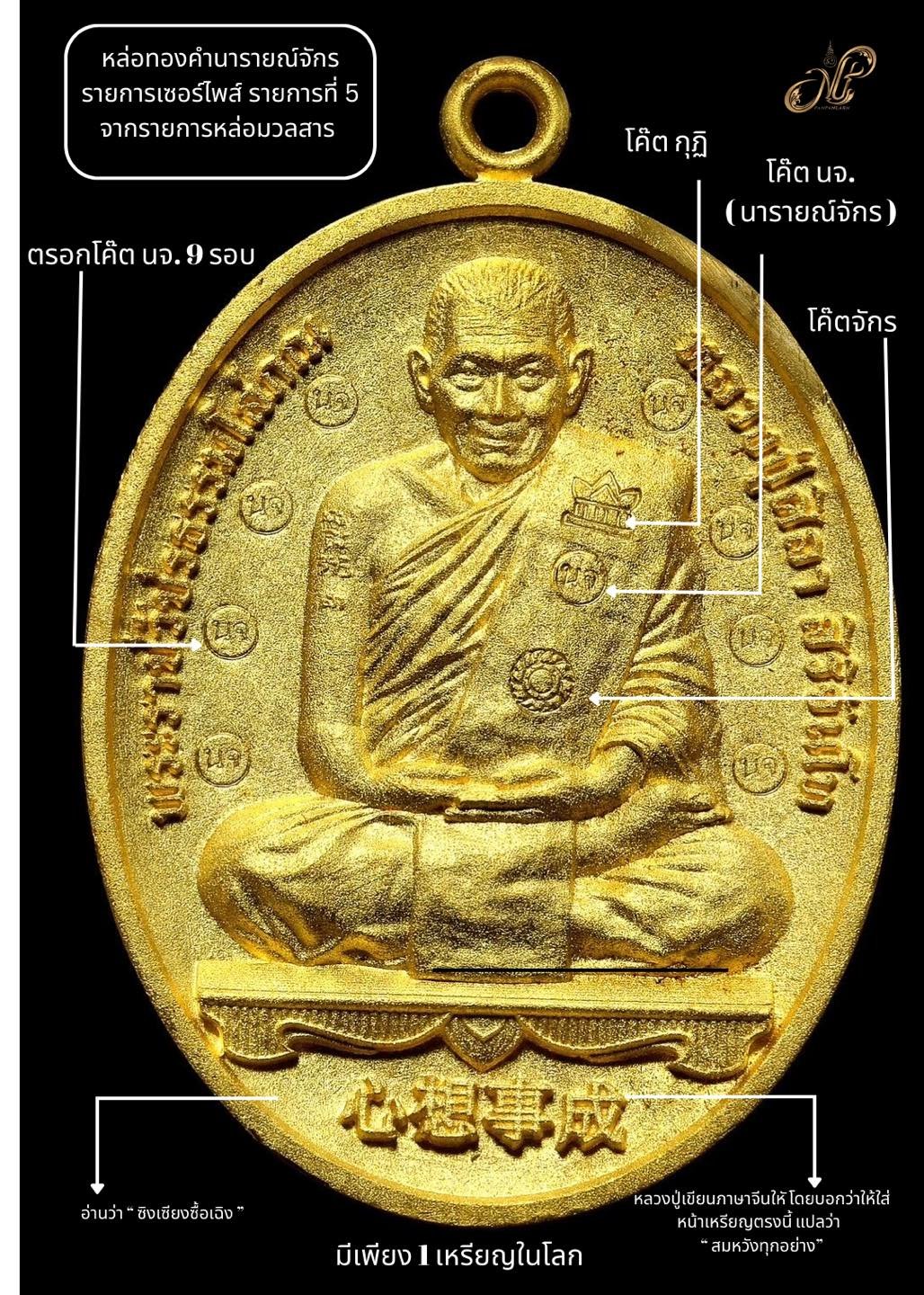 พระผู้เป็นใหญ่เหนือผู้ใดใน 3 โลก ผู้ปกปักรักษาโลก เป็นหนึ่งในสามเทพเจ้า (ตรีมูรติ) และได้รับการเคารพบูชาในฐานะพระเป็นเจ้าสูงสุด ทำให้เข้าใจอย่างถ่องแท้ว่าหลวงปู่ใส่ใจในรายละเอียดและตัวผู้สร้างเป็นอย่างมาก พุทธคุณแห่งจักรนารายณ์ ดีเด่นด้านคุ้มภัยปราบศัตรู กันคุณไสย ไล่สิ่งอัปมงคล ส่งเสริมการงานให้สำเร็จ ปราบทุกข์เข็ญ อุปสรรคทั้งปวงให้สลายหายสิ้น พิชิตหมู่มารมีชัยเหนือศัตรูทำลายทะลุทะลวงคุณไสยมนต์ดำ อวิชชาต่างๆ ให้แพ้สิ้น บรรดาบุคคลในเครื่องแบบมักนิยมบูชา