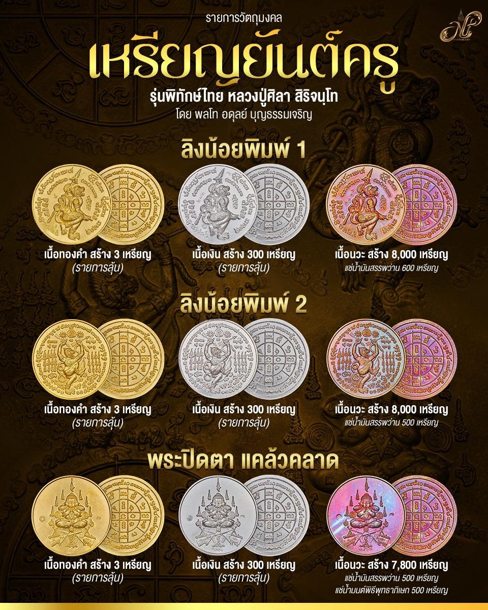 เครื่องราง “แม่ทัพ” ๓ พิมพ์ มีเนื้อนวะมหาชนวนเนื้อเดียว ลุ้นเนื้อทองคำ พิมพ์ละ ๓ เหรียญ ลุ้นเนื้อเงิน พิมพ์ละ ๓๐๐ เหรียญ พุทธคุณ”ครอบจักรวาล” แคล้วคลาดปลอดภัย โชคลาภ เมตตาค้าขาย ชอบพิมพ์ไหน ถูกใจถูกจริตรายการใด หรือจะเอา ทั้ง ๓ พิมพ์