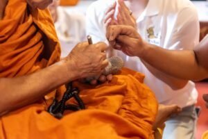 ผู้มีบุญบารมีเก่าหลายภพชาติ ปฏิบัติธรรมอย่างเข้มข้น มีพลังสมาธิสูงเกินกว่าที่ผู้อื่นจะหยั่งถึง พร้อมนำ “ไม้เท้าคู่บารมี” ร่วมประกอบพิธีด้วยหลวงปู่ประเสริฐ สิริคุตโต