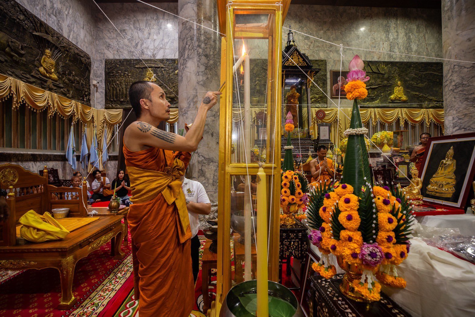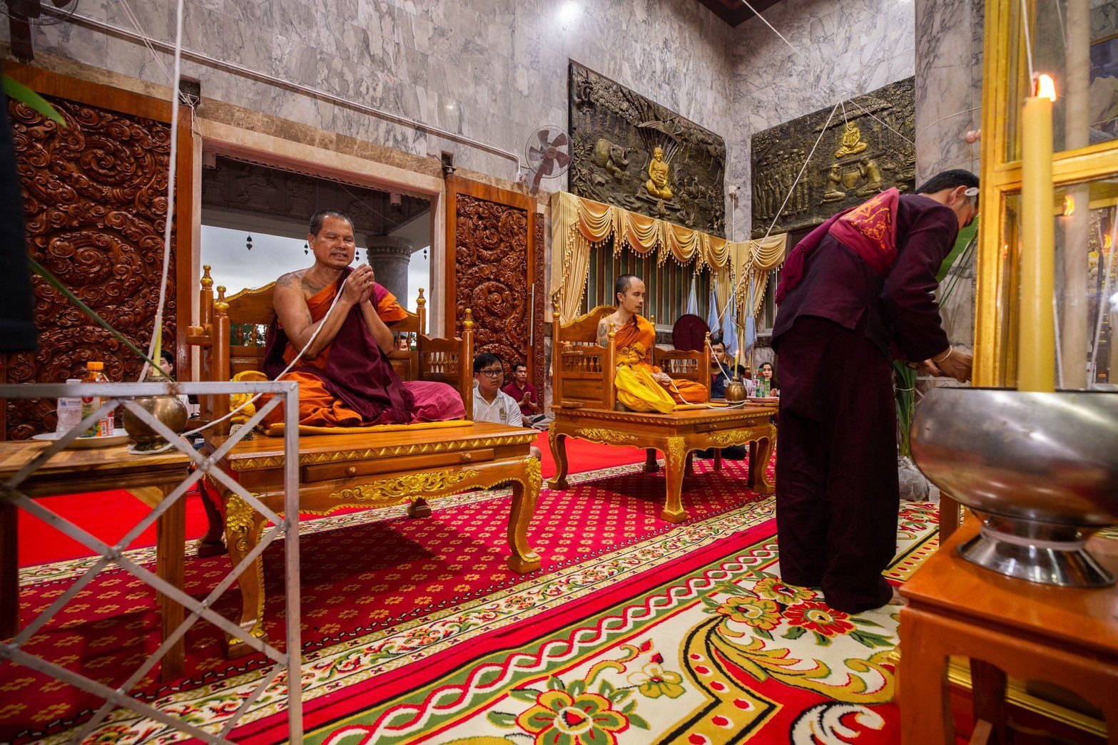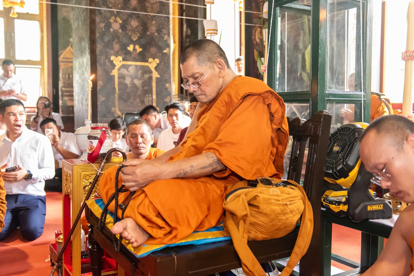 ทายาทธรรมสายหลวงปู่ผาง วัดอุดมคงคาคีรีเขต เมตตาเป็นผู้จุดเทียนชัย ท่านสงบนิ่งเพ่งจิตบริกรรมภาวนาตลอดพิธีด้วยอานุภาพแห่งสมาธิอันแกร่งกล้าหลวงพ่อมนูญชัย