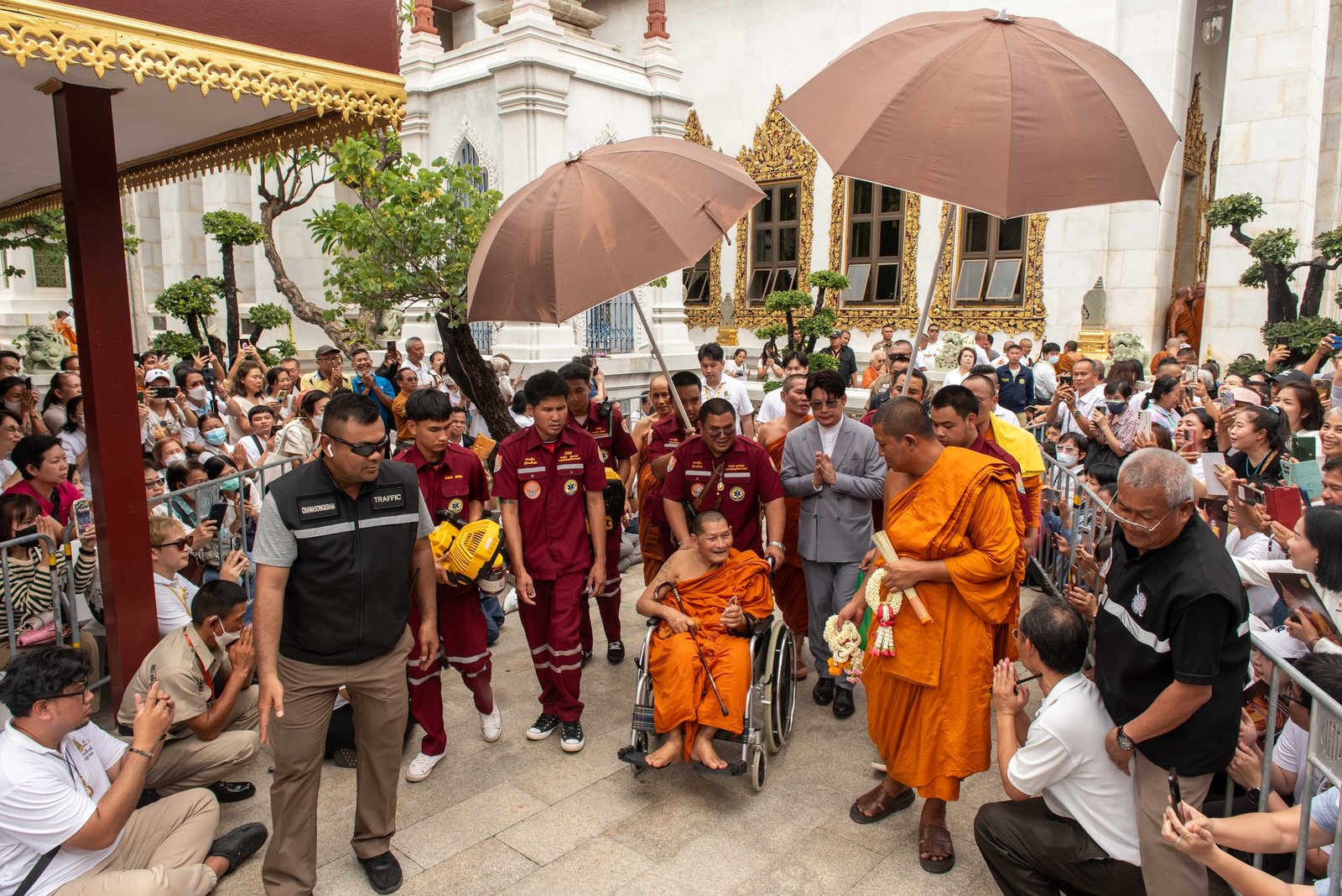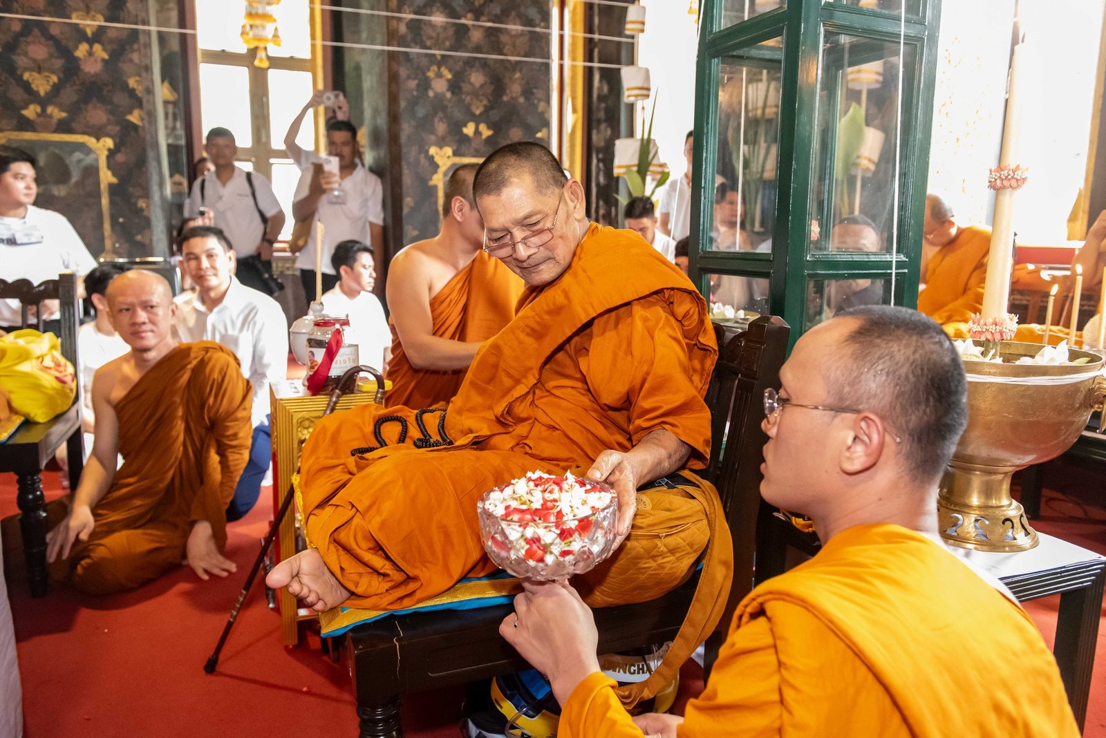 ผู้มีบุญบารมีเก่าหลายภพชาติ ปฏิบัติธรรมอย่างเข้มข้น มีพลังสมาธิสูงเกินกว่าที่ผู้อื่นจะหยั่งถึง พร้อมนำ “ไม้เท้าคู่บารมี” ร่วมประกอบพิธีด้วยหลวงปู่ประเสริฐ สิริคุตโต