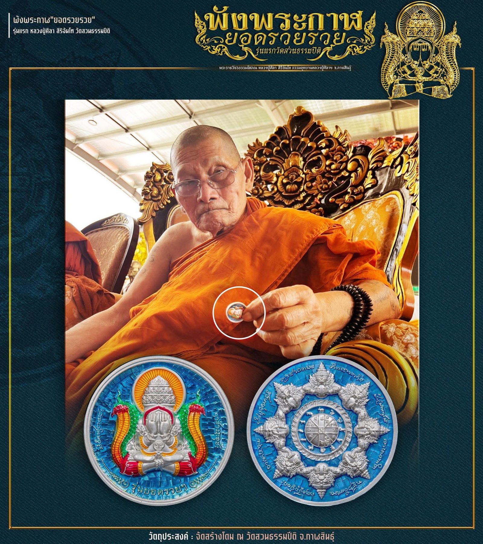 “เหรียญรุ่นพังพระกาฬ” หลวงปู่ศิลา สิริจันโท วัดสวนธรรมปีติ หนึ่งในวัตถุมงคลสำคัญ วาระกฐิน ประจำปีพุทธศักราช ๒๕๖๘ ณ ธรรมอุทยานหลวงปู่ศิลา (วัดสวนธรรมปีติ) ซึ่งเปิดให้ร่วมบุญ โดย หลวงปู่ศิลา เมตตาอธิษฐานจิตและเขียนคำอวยพรให้กับรุ่นนี้ว่า