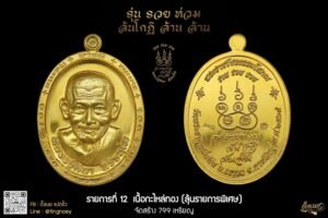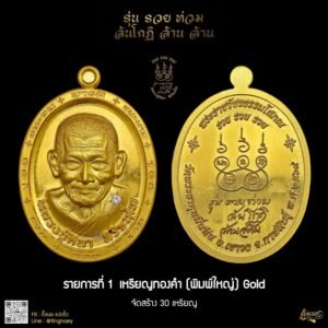 โดยวัตถุมงคล รุ่น “รวยท่วม ล้นโกฏิ ล้านล้าน” จัดสร้างในเนื้อทองคำ และเนื้อทองชมพู (Rose Gold) ซึ่งเป็นวัตถุมงคลที่มีการผสมมวลสารอันเป็นมหามงคล ส่งผลให้เกิดความเข้มขลังในด้านการเสริมบารมี โชคลาภ ความมั่งคั่ง และการคุ้มครองป้องกันภัยแก่ผู้บูชา