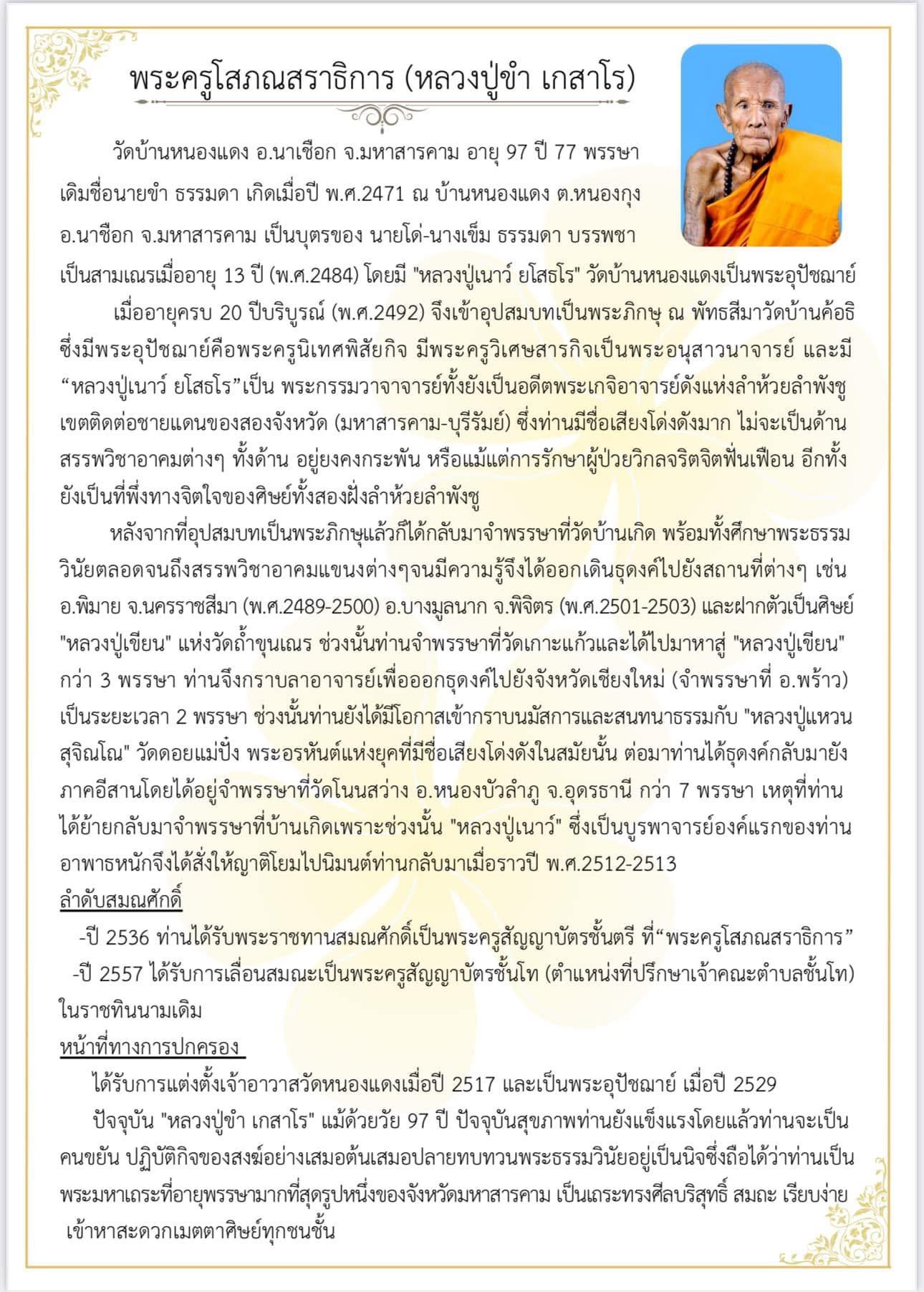สูจิบัตรประวัติหลวงปู่ ที่จะนำทูลเกล้าถวายกรมสมเด็จพระเทพ ฯ พร้อมด้วยพระพุทธรูปหลวงพ่ออายุยืน และเหรียญ “เหนือดวง” “พลิกดวง” “ดวงเศรษฐี”